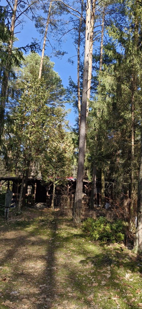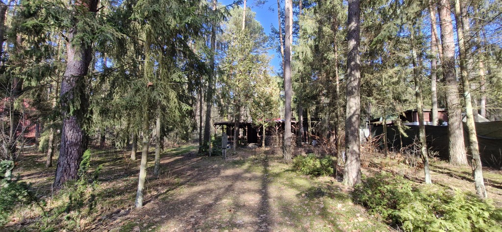 Na działce jest jeszcze komórka. Po sąsiedzku znajdują się działki zabudowane domami rekreacyjnymi. Na działce stary las sosnowy.